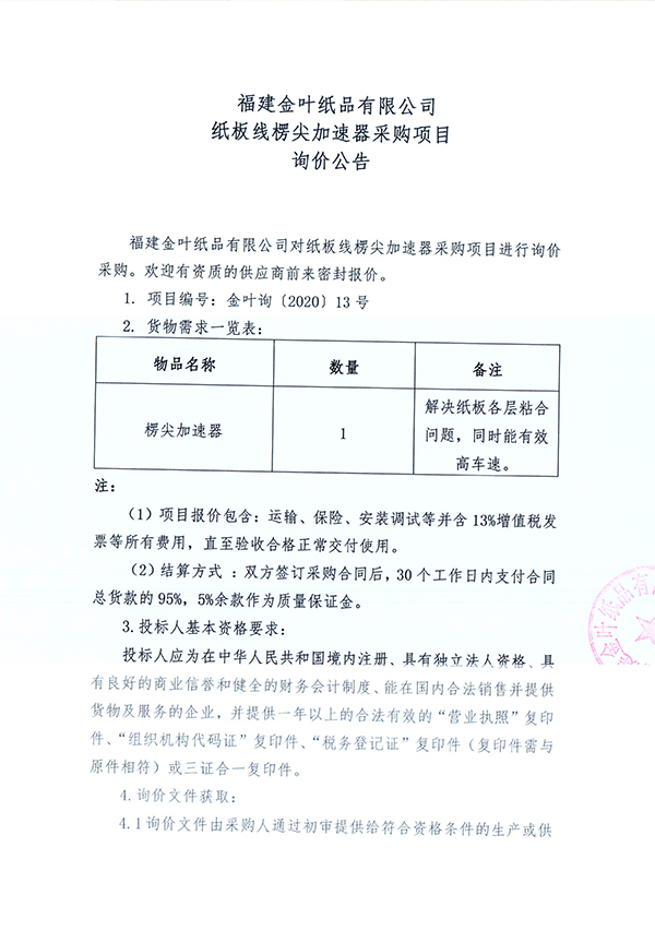 紙板線楞尖加速器采購(gòu)項(xiàng)目詢價(jià)公告