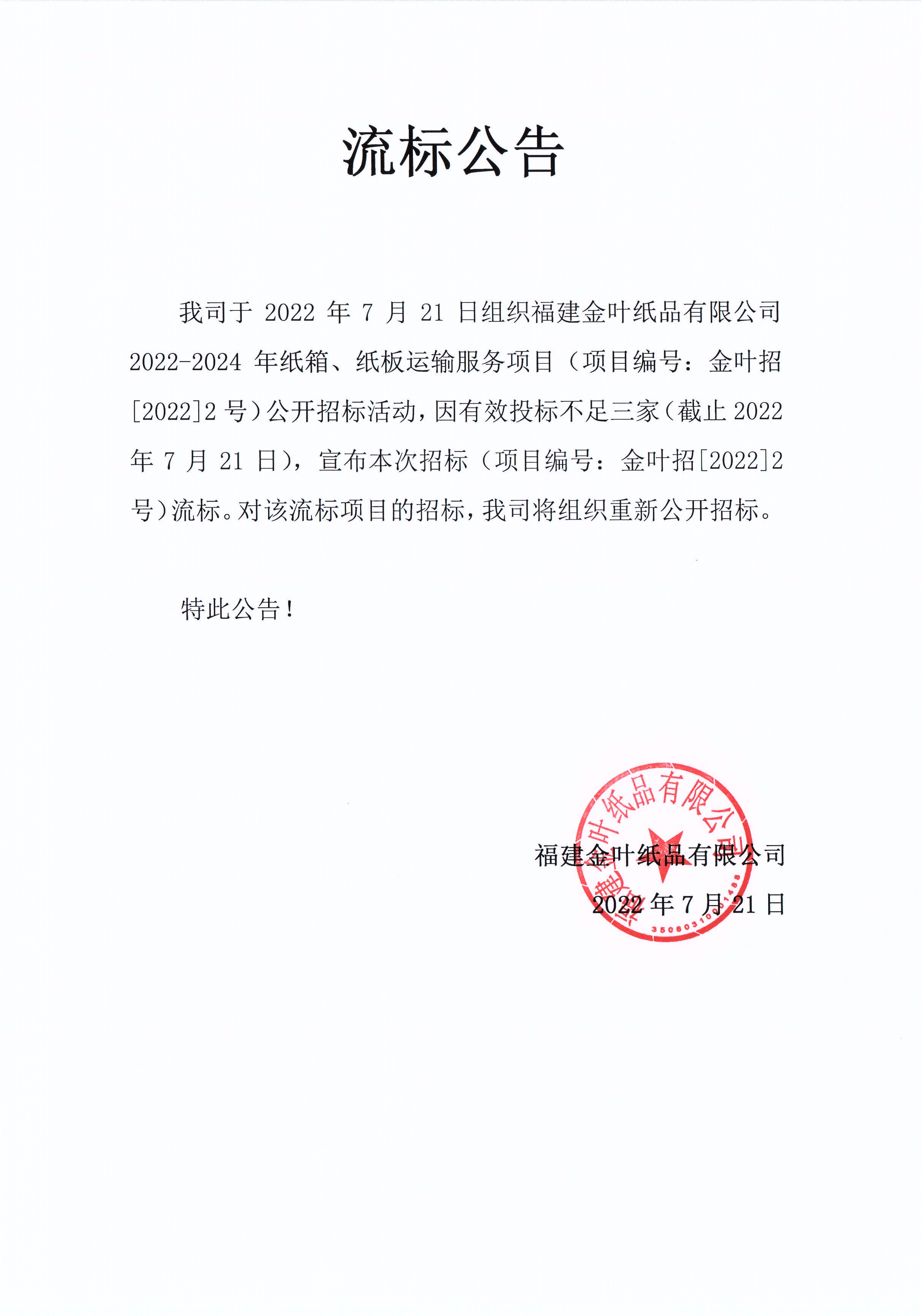 流標(biāo)公告
