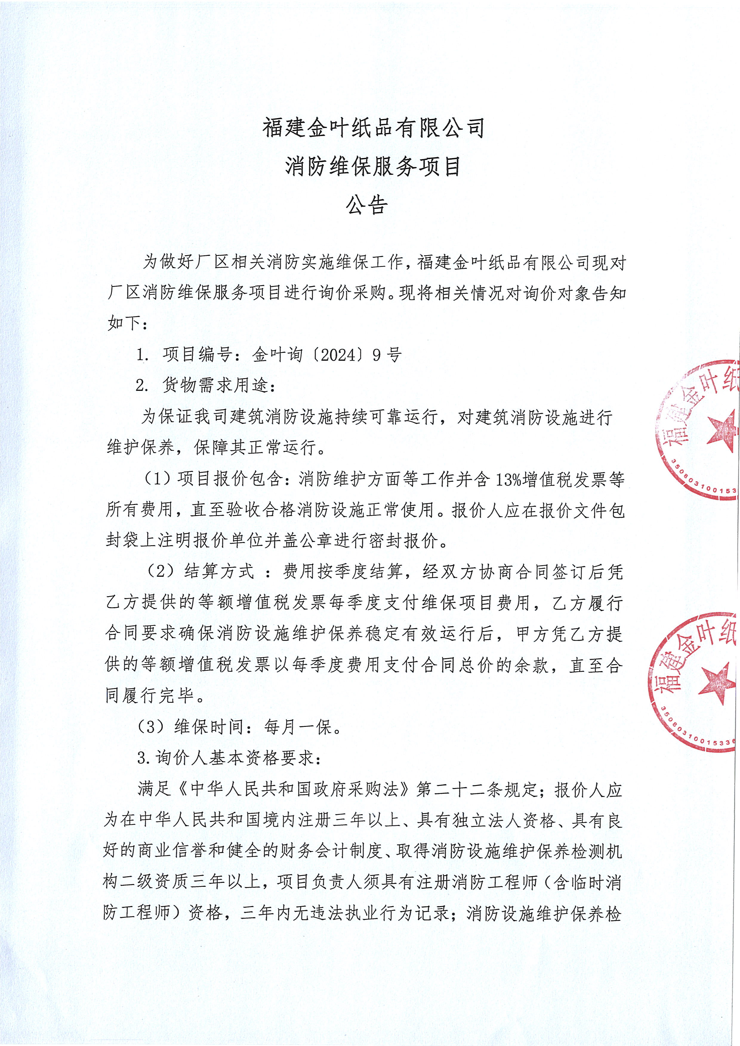 消防維保服務(wù)詢價(jià)項(xiàng)目